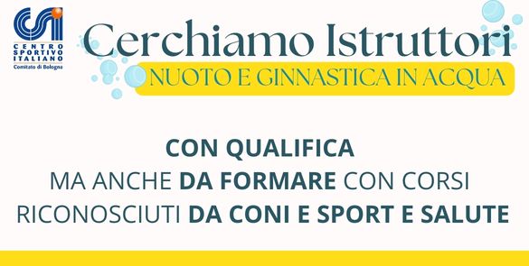 Il CSI Bologna cerca collaboratori sportivi per le Piscina Stadio, Tanari e Kennedy e non solo!