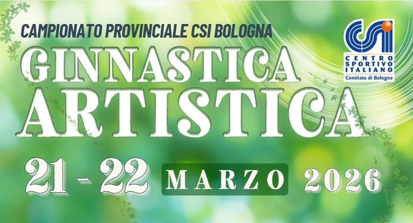 Sabato e domenica 21 e 22 MARZO 2026 si terrà la gara del Campionato Provinciale di Ginnastica Artistica CSI Bologna 2026.