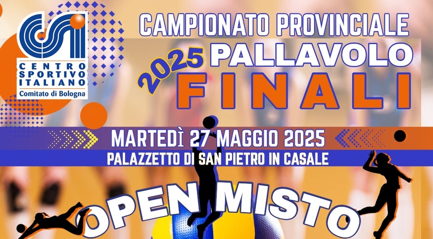 Martedì 27 maggio si terranno le Finali del Campionato Open Misto di Pallavolo del CSI Bologna presso il Palazzetto di San Pietro in Casale.