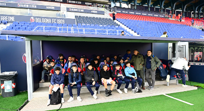 Nel pre-gara di Bologna-Cagliari, i giovani atleti dell’Oratorio Don Orione e de…