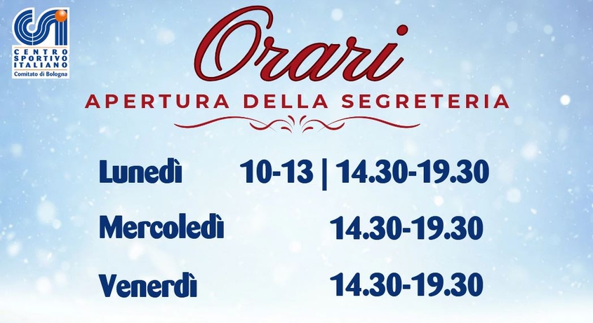 Dal prossimo 2 dicembre entra in vigore l'orario invernale della segreteria del Comitato CSI di Bologna: