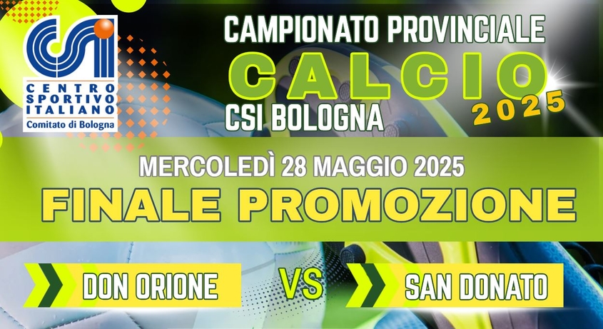 La finalissima del Campionato di Calcio 2024/2025 CSI Bologna per la categoria PROMOZIONE si terrà