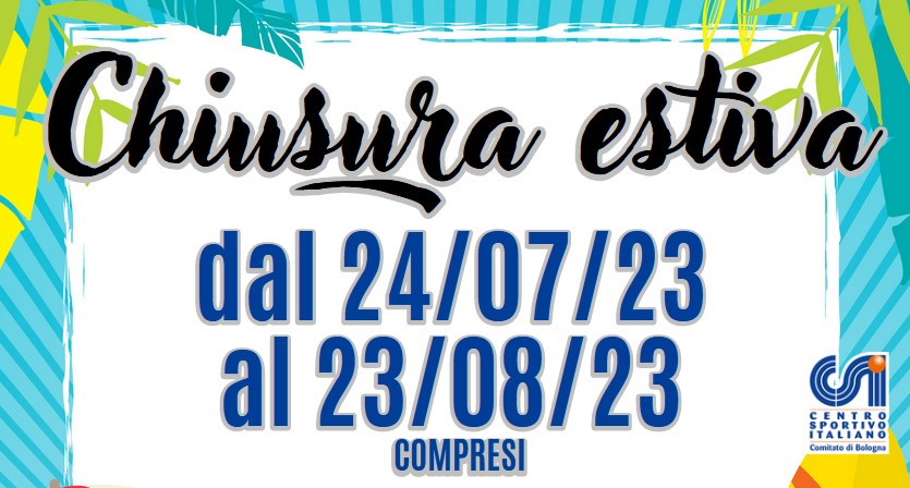Il Comitato CSI di Bologna chiude per le vacanze estive dal 24 luglio al 23 agosto compresi. Ci rivediamo il 24 agosto!