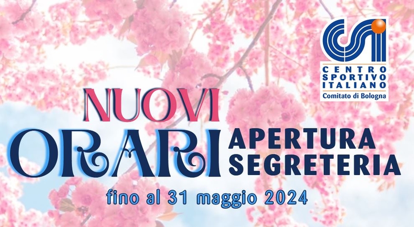 Dal 1° settembre 2023 cambiano gli orari della segreteria del Comitato CSI di Bologna.