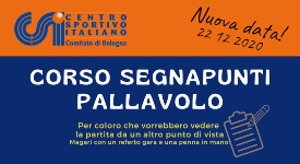 In modalità web sulla piattaforma GoogleMeet, si terrà il Corso per Segnapunti di Pallavolo CSI il 3/12 e il 15/12 alle ore 20.