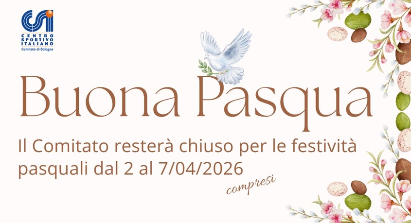 Il Comitato CSI di Bologna chiude per le festività Pasquali dal 2 al 7 aprile 2026 compresi.