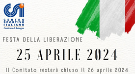 In occasione della Festa della Liberazione del 25 aprile, il Comitato CSI di Bologna rimarrà chiuso anche venerdì 26/04/2024.