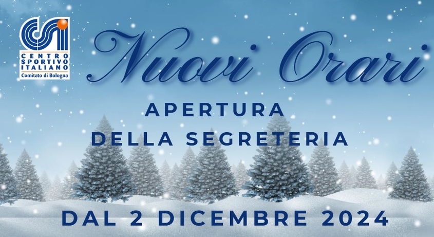 Dal prossimo 2 dicembre entra in vigore l'orario invernale della segreteria del Comitato CSI di Bologna: