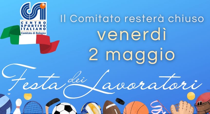 La segreteria del Comitato CSI di Bologna in occasione del 1° maggio 2025, Festa dei Lavoratori, rimarrà chiuso anche venerdì 2 maggio 2025.