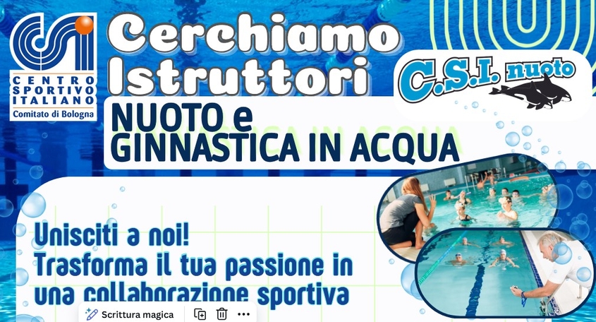 Il CSI Bologna cerca collaboratori sportivi per le Piscina Stadio, Tanari e Kennedy.